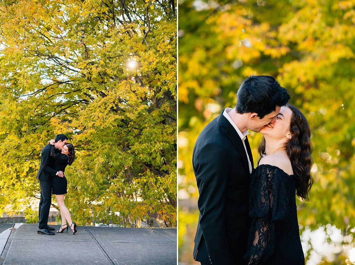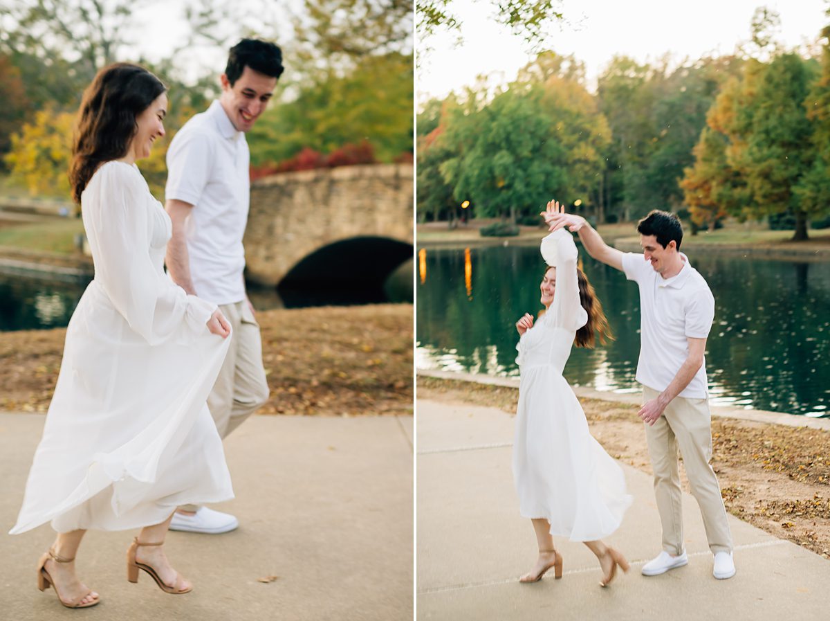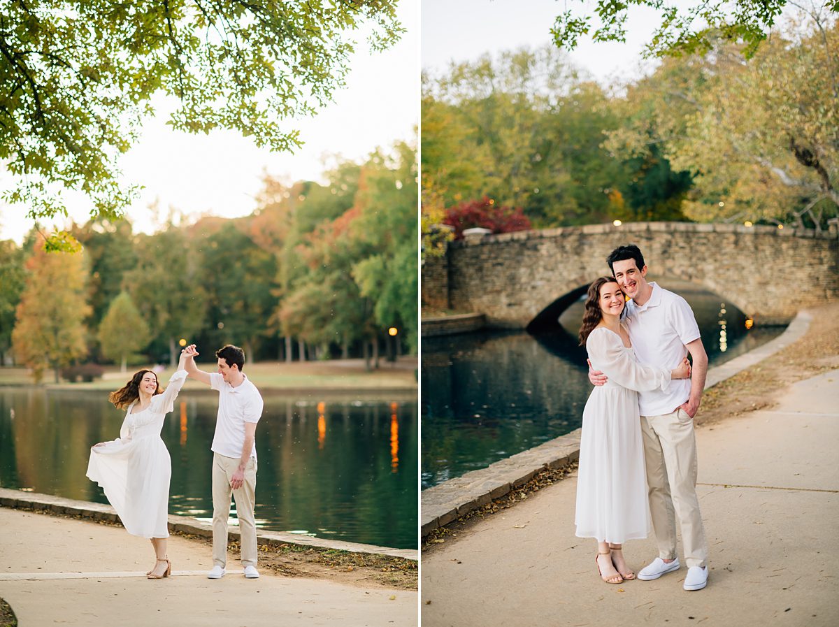 We then headed to Freedom Park, one of Charlotte’s most popular spots for engagement pictures. With wide open green spaces, tree-lined paths, and gorgeous waterfront views, it’s the perfect place for couples who want a relaxed and romantic backdrop. The soft evening light filtered through the trees as we walked around the lake, giving us a dreamy glow that highlighted their sweet chemistry. Bailey and James’ quiet giggles, gentle hand squeezes, and the way they leaned into one another made every photo feel warm and effortless. Freedom Park is always beautiful, but their connection truly brought it to life.