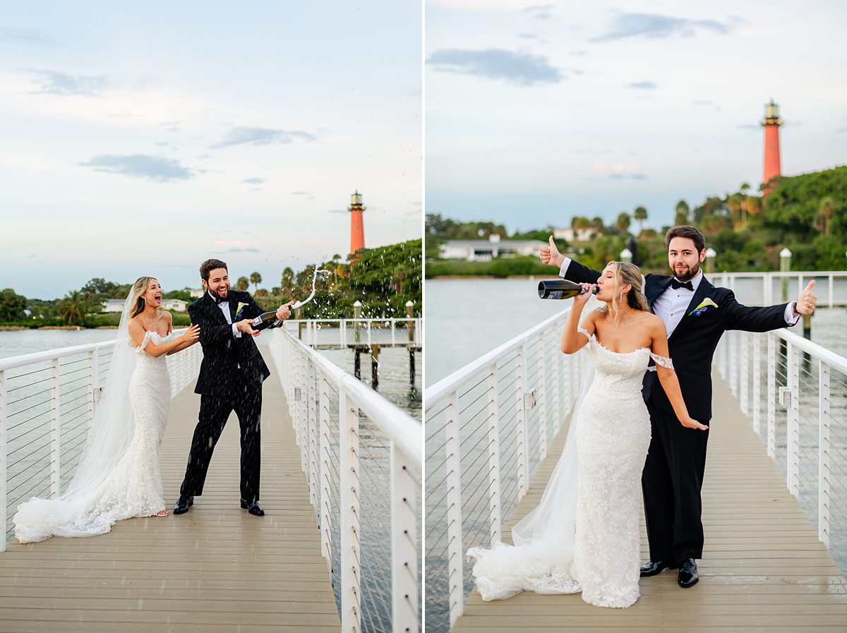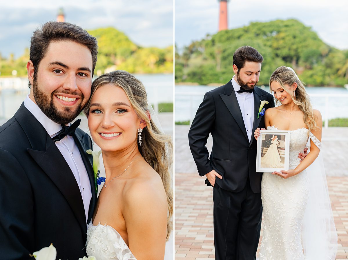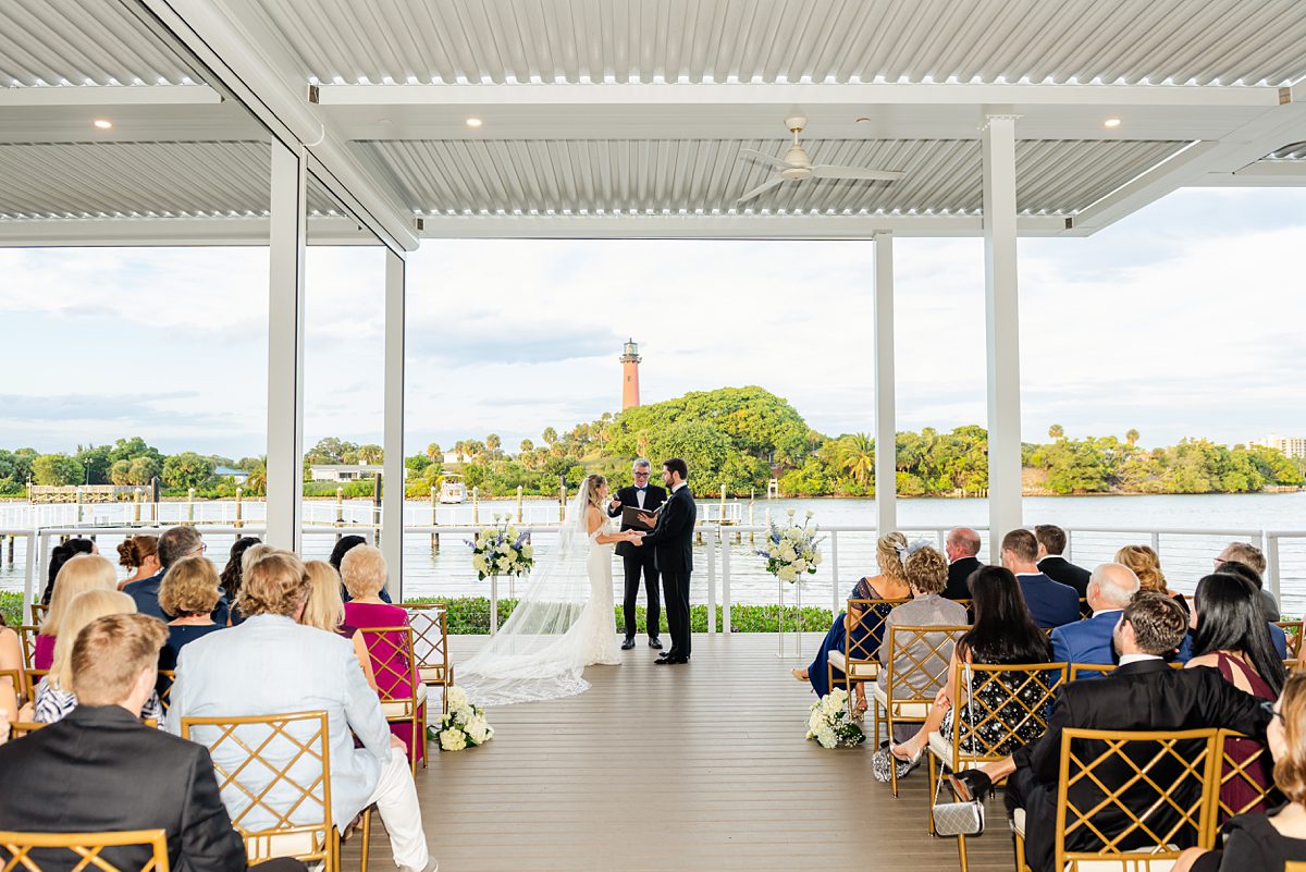The morning was calm but excited, with happy nerves, sweet moments with family, and lots of genuine smiles. Alexa absolutely glowed, surrounded by people who clearly adore her. James’ reaction when he saw her for the first time during their first look? Pure joy! These are the moments we live for in the in-between glances, the quiet excitement, the deep breaths before the day unfolds. Their ceremony took place overlooking the water, with the iconic Jupiter lighthouse serving as the perfect backdrop. There was so much laughter woven into the ceremony including happy tears, beaming smiles, and that unmistakable feeling of this is exactly where we’re meant to be. The love between Alexa and James was effortless and evident in every moment!
