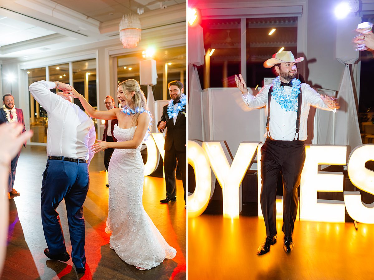 And the reception was such a great time! From heartfelt toasts to nonstop dancing, the energy never dipped. Guests celebrated hard, laughed loud, and soaked in every second of the night. The couple spent the entire evening together on the dance floor, mingling with guests, laughing, hugging, and fully present. It was one of those weddings where you could feel the joy in the room! This Pelican Club wedding was everything we love about weddings from their connection, celebration, and a whole lot of joy. Being able to document a day like this, filled with love and laughter, is the reason we do what we do! Here are some faves from Alexa and James’ Pelican Club wedding