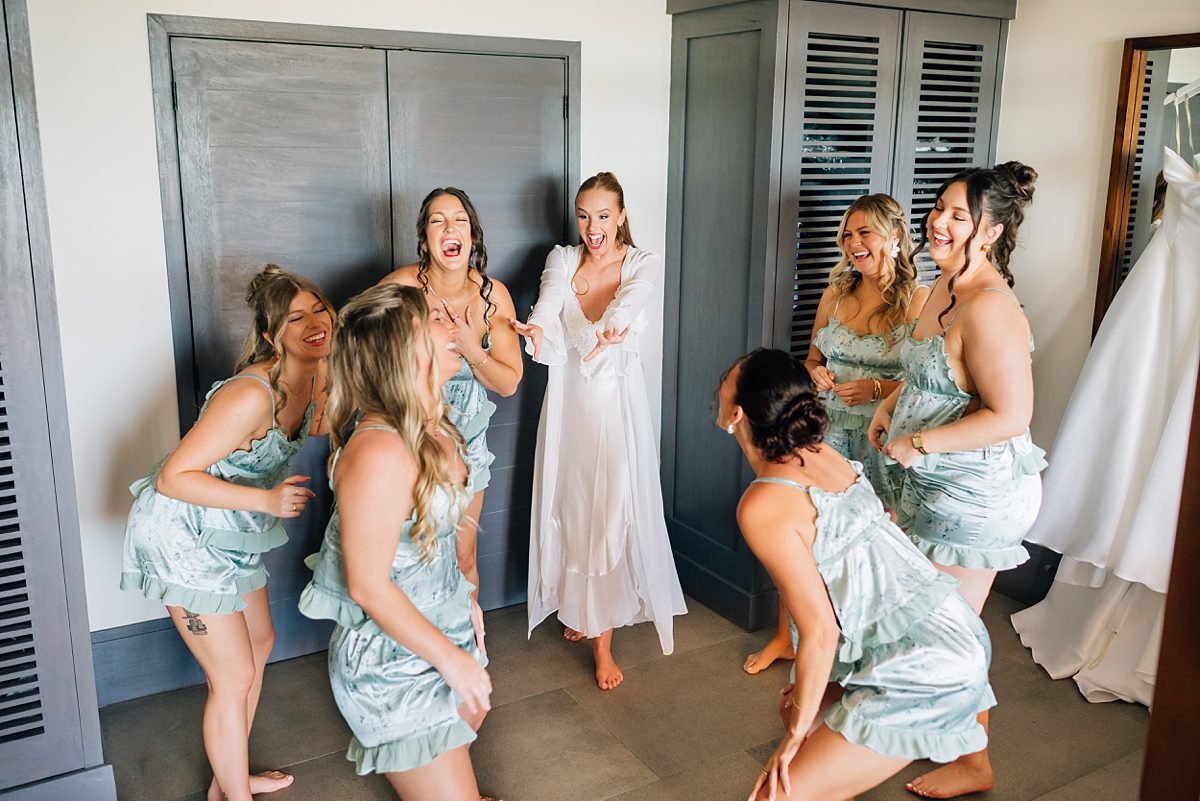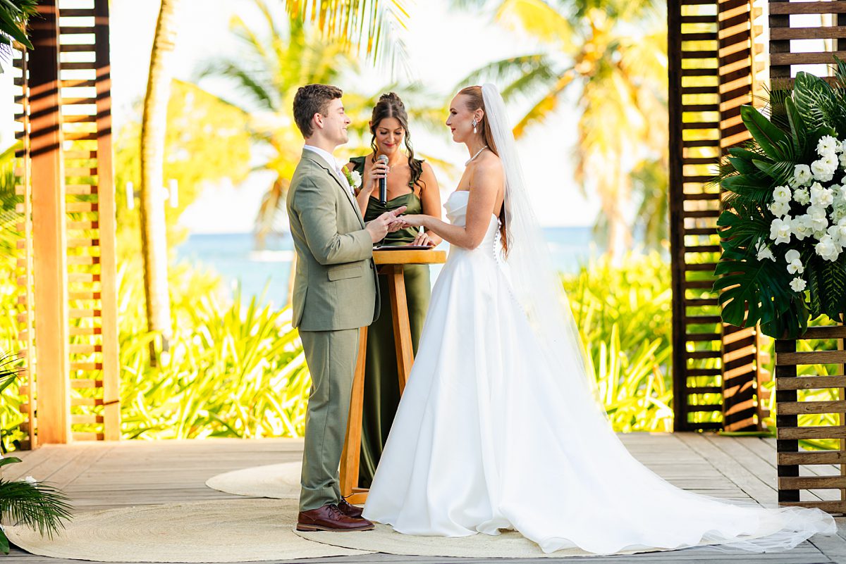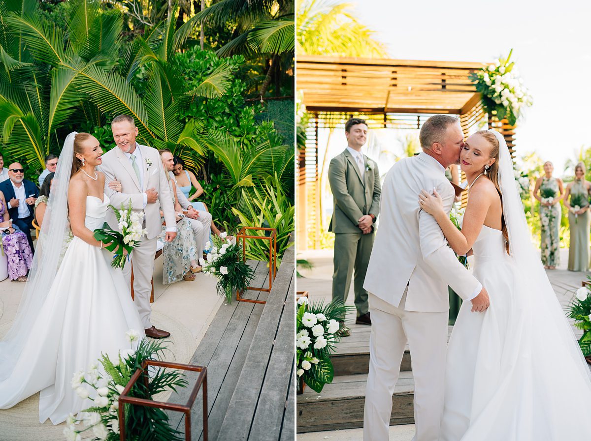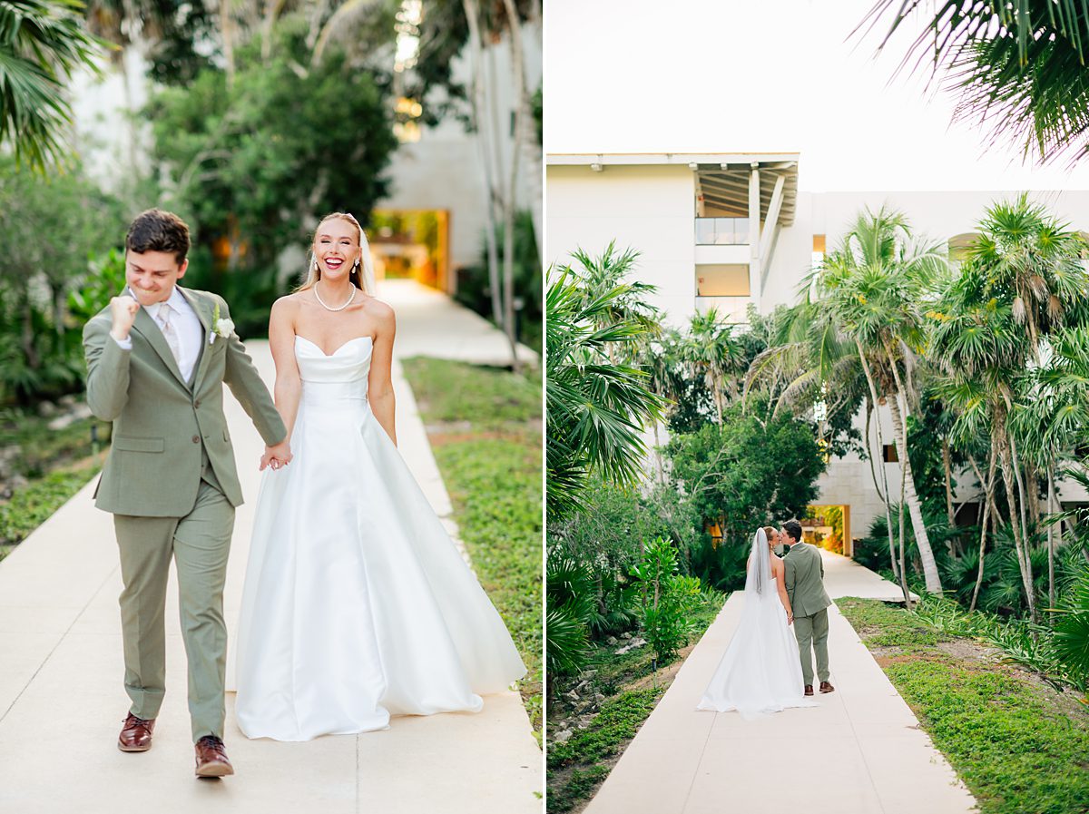 The day started slowly and peacefully, with both of them getting ready in suites overlooking the tropical landscape. There was so much buzz and excitement for them to be getting married and they were beaming the entire day! They had the sweetest first look and one of the best and most supportive wedding parties. Their ceremony took place outdoors under the most beautiful gazebo, with the sound of the ocean in the background and a warm Riviera Maya breeze. That same gazebo was the one Mckenzie had seen on Pinterest at the beginning of planning their wedding and she just knew that they had to get married in that exact spot!